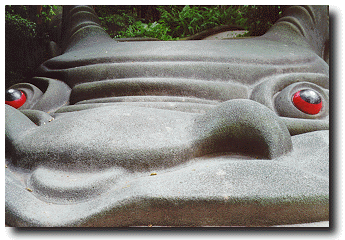 Singapore's mascot is a half lion, half fish called a Merlion. The Merlion on Sentosa cost 15 million dollars to build but has lasers which shoot out of the eyes and a skin made of fiber optics which can be manipulated like neon from hell.The musical fountain turns out to be pretty lame; as does Burger King. A traipse through the "Asian Village" and then we take the skytram back to Singapore proper.